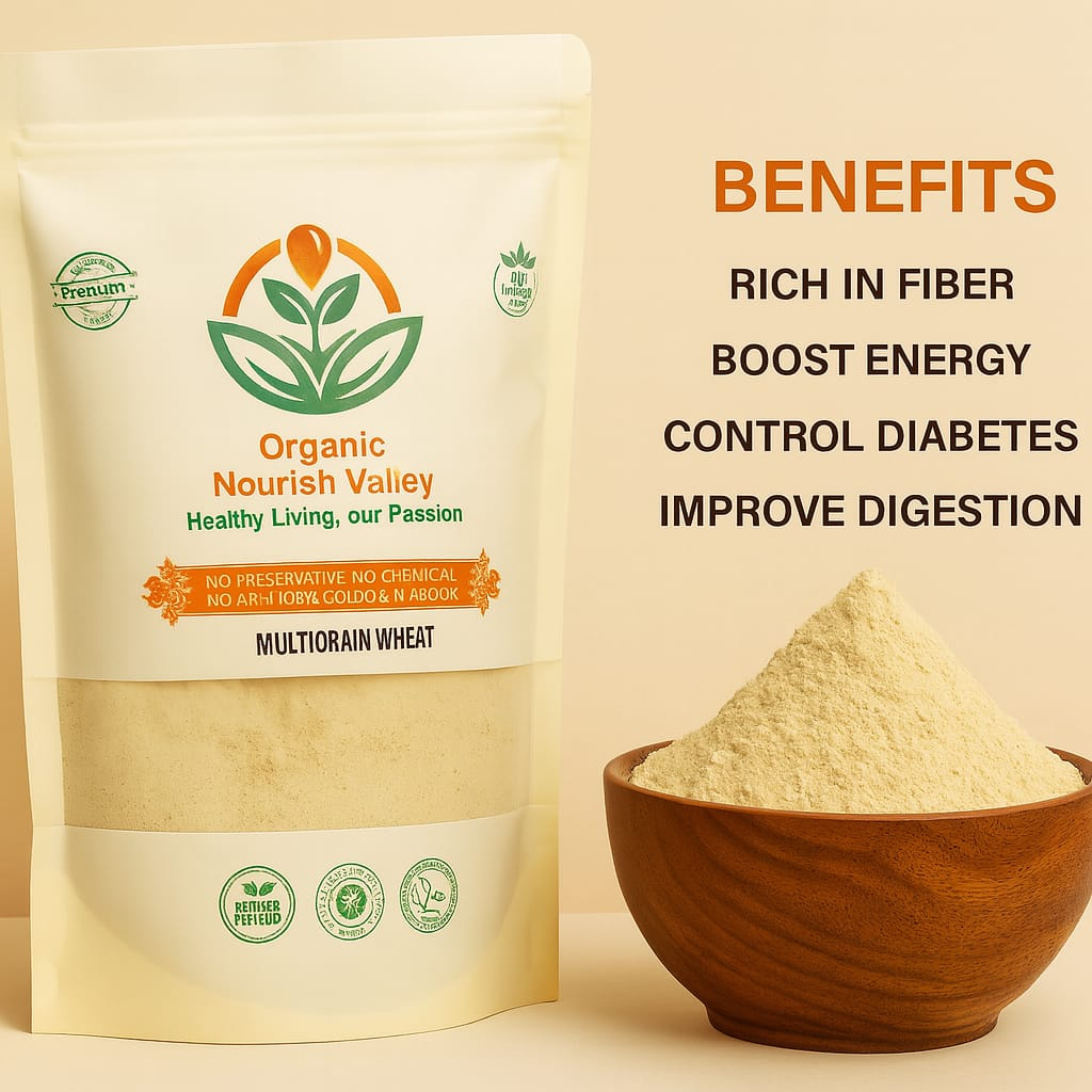 Organic multigrain wheat flour is made from a nutritious blend of whole grains, offering higher fiber, protein, and minerals than regular wheat. Stone-ground and chemical-free, it supports healthy digestion and sustained energy. Ideal for soft rotis, breads, and everyday wholesome cooking.